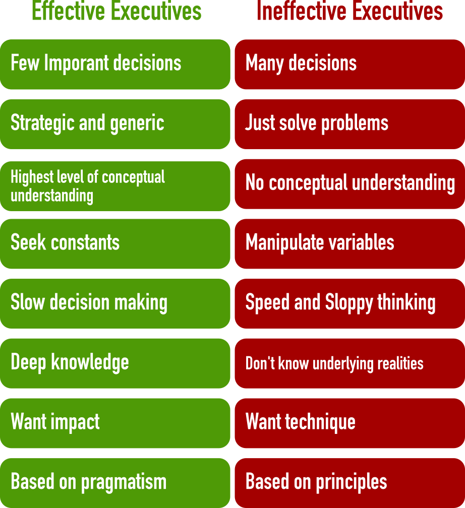 The other day I was just skimming through an wonderful piece of work by Peter F. Drucker called “the effective executive”. One of the important abilities of an effective executive as suggested by Drucker, is the ability to make effective decisions. He highlights some key differences between effective decision makers and the ineffective ones.