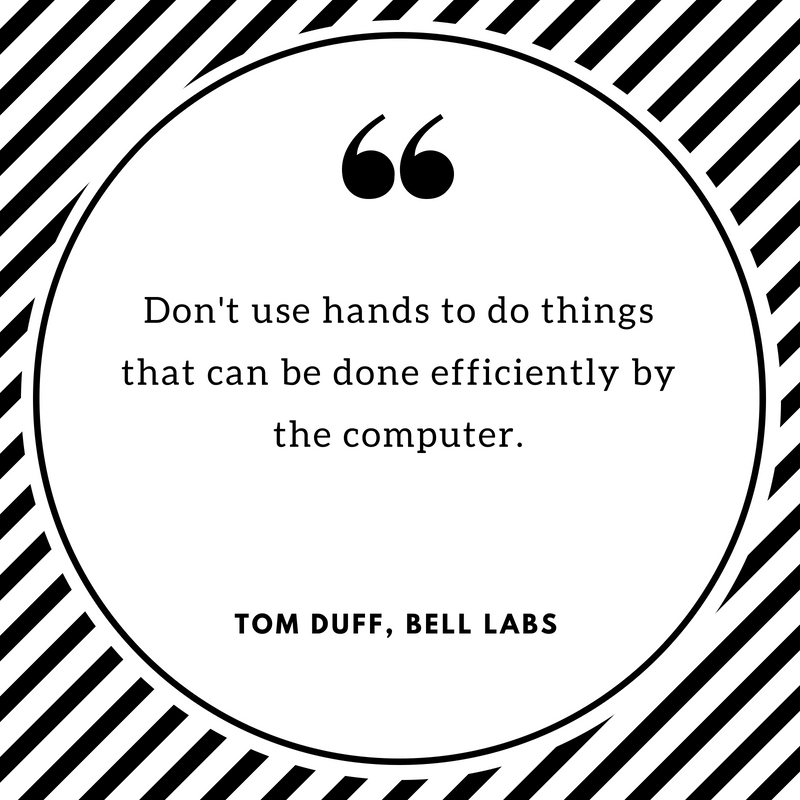 Don’t use hands to do things that can be done efficiently by the computer. – Tom Duff, Bell Labs