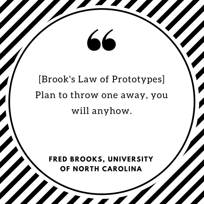 [Brook’s Law of Prototypes] Plan to throw one away, you will anyhow. – Fred Brooks, University of North Carolina