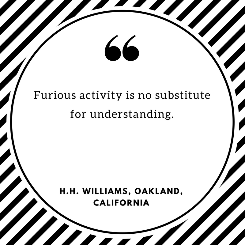 Furious activity is no substitute for understanding. – H.H. Williams, Oakland, California