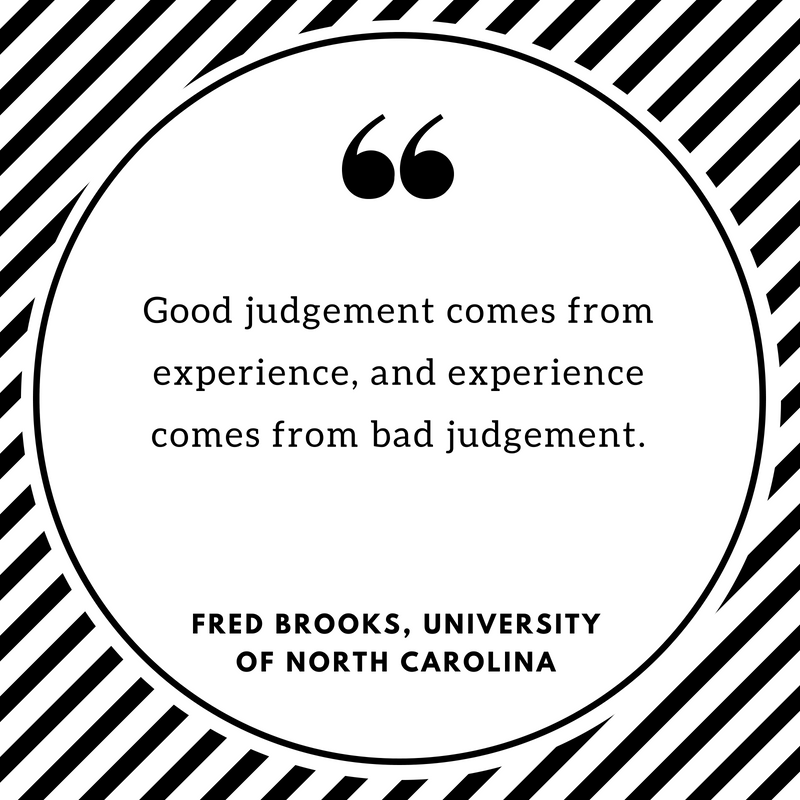 Good judgement comes from experience, and experience comes from bad judgement. – Fred Brooks, University of North Carolina