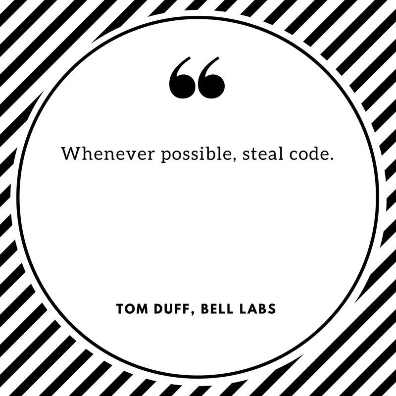 Whenever possible, steal code. – Tom Duff, Bell Labs