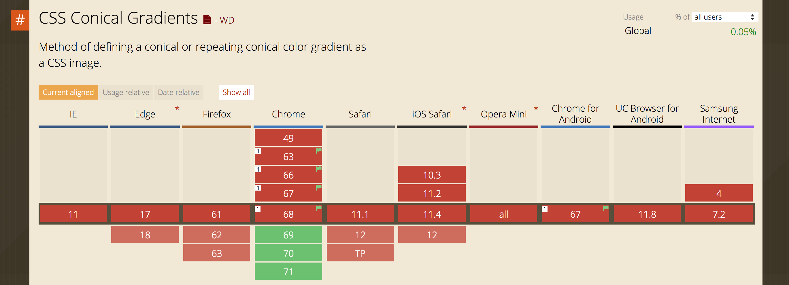 CSS Conical Gradients is finally gaining momentum among browser landscape
